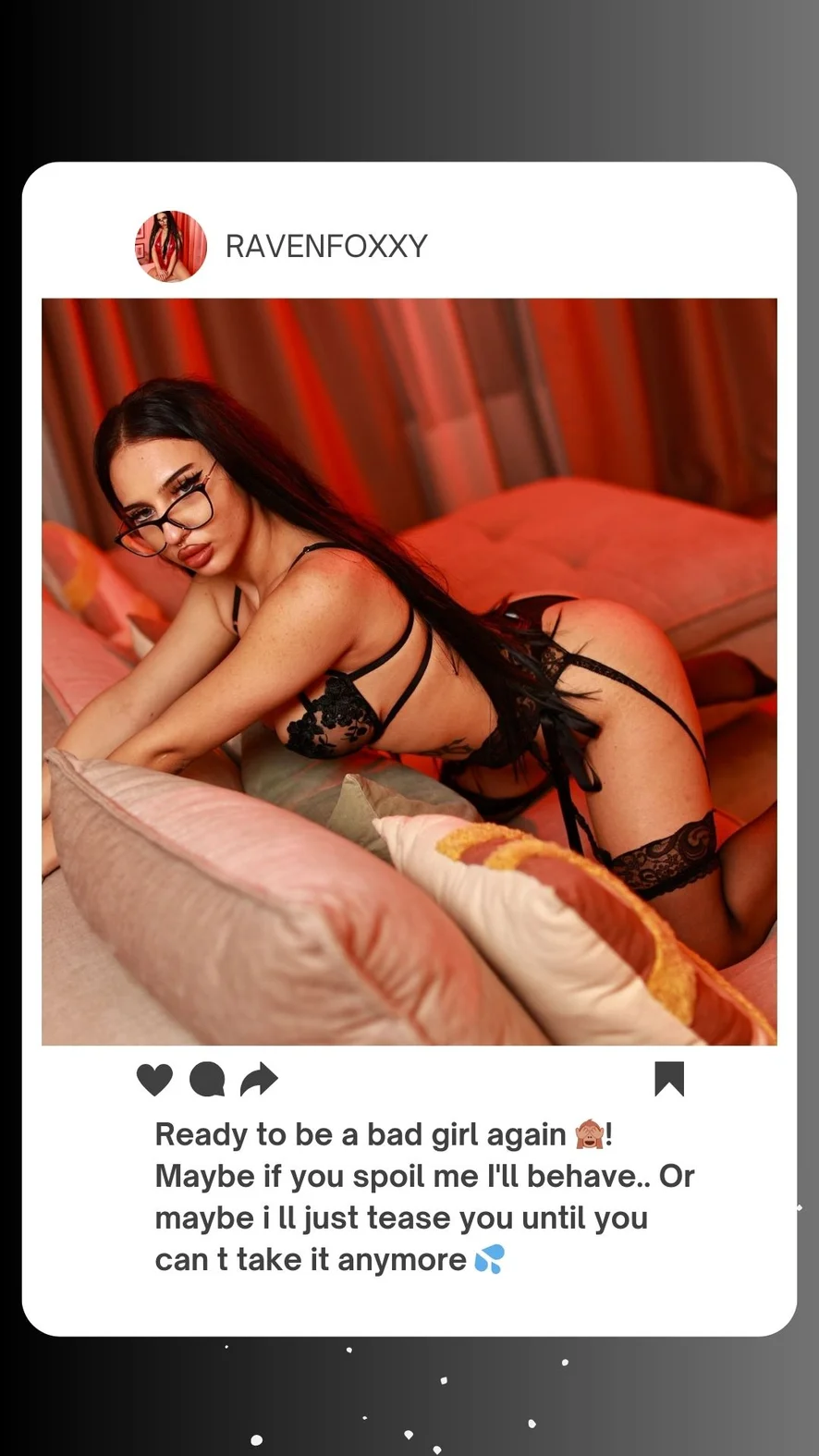Felație, Camel Toe, Evaluare Penisuri, Cowgirl, Pe la spate, Masturbare cu degetele, Flashing, Pantofi cu toc, Spectacol cu ulei, Plesnire, Topless, Twerk, Ejaculare vaginală, Incornorati, Sex oral in adancime, Dildo sau Vibrator, Discutii murdare, Footjob, Fetis Picioare, Gagging, Latex, Piele, Masturbare, Joc de rol, Striptease, Fumat, Sex între sâni, Dans Erotic, Anus dilatat, Umilire, Instrucțiuni pentru masturbare, Amante, Orgasm, În aer liber, Jucarii Sexuale, Dus, Strap-on, Improscare
